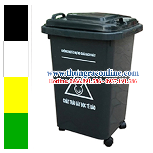 Màu sắc: | – Màu Vàng hoặc tông màu vàng: Chất thải lây nhiễm – Màu Xanh hoặc tông màu xanh: Chất thải thông thường – Màu Đen: Chất thải gây hại tế bào – Màu Trắng hoặc tông màu trắng: Chất thải tái chế |