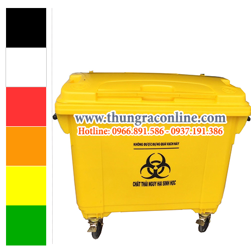 Màu sắc: | – Màu Vàng hoặc tông màu vàng: Chất thải lây nhiễm – Màu Xanh hoặc tông màu xanh: Chất thải thông thường – Màu Đen: Chất thải gây hại tế bào – Màu Trắng hoặc tông màu trắng: Chất thải tái chế |